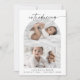 Det här moderna boho Arch-fotosamlingskortet för födelseinformation gör att perfekt baby tillkännager för en pojke eller flicka. Den bohemiska svarta och vita designen har en unik industriell präglingstypografi med minimal chic stil. Anpassa kortets framsida med tre foton av ditt nyfödda, din baby namn och födelsestatus. Ta med ytterligare ett foto, ett längre meddelande och föräldrarna namn eller namn på baksidan av kortet.
