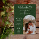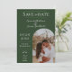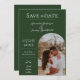 Meddela din bröllopsdag med det här Modern Boho Arch Photo Spara datum meddelande i emerald grönt. Spara datumsymbolen med en ljusskygg stil-fotoplacering för lycklig-paret med elegant och modern textdesign. Lägg till foton och information om bröllop som du vill anpassa.