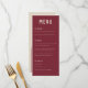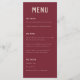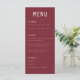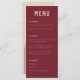 Modern Bröllop-menu i mörk röd och beige med stark ren typografi och en båho-båge på baksidan av kortet. Anpassa det här menykortet för Bröllop så att det passar dina behov, ändra inslag och färg om du vill. Ta helt enkelt bort texten på baksidan om du vill använda det här menykortet till ett annat firande, t.ex. födelsedag, catering osv. Matchande bröllop-kontorsmaterial finns i min butik.