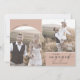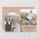 Det här moderna boho arch lax 3-fotokortet för förlovning gör perfekten till ett enkelt annonskort. Rosan av den bohemiska orangen har en unik industriellt präglad präglingstypografi med minimalistisk vintage stil. Anpassa kortets framsida med 2 foton och namnen.
