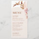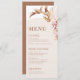 Modern Boho Blommigt Arch Menu Modern men romantiskt menykort för bröllop med en blek i mitten och en torr blommigt arrangemang med handflatan och blommor av lämnad . Den här bohemiska bröllop-menyn är ett avtal för ett par som tycker om djärva blommigtar med en modern tvist.