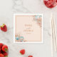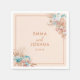 En modern och elegant boho bröllop napkin, med blå och teracotta vattenfärgade blommigtar i hörnen. Anpassa med datum för namn och bröllop.