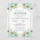 Fira din möhippa med dina närmaste äktenskapspaltar och inbjudan dem med detta söt moderna boho blommigt inbjudningskort för möhippan-vykort. Den här söt möhippa inbjudan har ett blått blommigt med elegant-skript. Mjuka och färska buketter av blommigt finns i varje hörn och accentueras av en elegant dubbla guld geometric ram. Lägg till all händelseinformation för att underlätta.