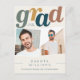 Perfektens moderna vykort för studenten-fotoannonsering för boho student! Med "grad" i sage, senap, blå lagun och terracotta-typografi mot beige bakgrund. Du kan enkelt välja två av dina favoritfoton på framsidan och ett annat på baksidan!