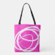 Den här coolan har en enkel men attraktiv utformning som består av en vit linje som gör att varje sida ritas på olika sätt: den ena är mycket bra i cirkelformade former och den andra är tjockare, vilket skapar en oregelbunden uttrycklig triangel. Bakgrunden är fuchsia.