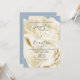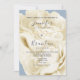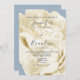 Elegant, boho, modern kalligrafi-manuset champagne guld och dammig blå bröllopsinbjudan med vackra guld-rep hjärta och ro blommor med abstrakt vattenfärg. Perfektens val för contemporaryns romantiska vår bröllop!