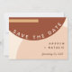 Ett modernt och elegant bröllop sparade datumen inbjudan ge en soho 70-talsbuske med dess abstrakt cirkel och rektangulära former mönster i monokromatiska jordtoner av terakotta, bränd orange och beige. Anpassa detaljer om bröllop och fotot.
