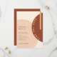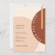 En modern och elegant bröllop sparade datumen en inbjudan ge av en 70-talsreflex med dess abstrakt cirkel och rektangulära former mönster i monokromatiska jordtoner av terracotta, bränd orange och beige. Anpassa detaljer om bröllop
