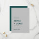 Modern Spara datumkortsmallen i mörk grönt och grått med stark ren typografi och en boho-båge på baksidan av kortet. Anpassa det här Bröllop spara datum-kortet så att det passar dina behov, ändra inslag och färg om du vill.