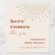 Enkelt modernt boho "här kommer barnduschtema", babyduschmunstycke party-dekoration, babydusch party-förråd, med neutralt beige, terracotta färg solsken och typografi. Perfekt för pojke, solskenstema för babydusch. Du kan anpassa text och färg.