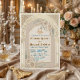 Fira din union med elegans med hjälp av salvia grön eukalyptus och krämfärgade rosor. Perfekt för en modern islamisk Nikkah eller Walima med en sofistikerad boho-känsla. Denna design har en central geometrisk valvrendering i en tryckt falsk guld folieeffekt, som ramar in den traditionella Bismillah arabiska kalligrafin högst upp. Layouten är prydd med mjuka akvarellillustrationer av krämfärgade rosor, fluffigt pampasgräs och salvia grön eukalyptusbladverk som kaskaderar från hörnen och skapar en romantisk organisk ram mot en neutral champagnejfärgad bakgrund. Typografin kombinerar ett djärvt, vintageinspirerat serif-teckensnitt i matt tealblått för namn med elegant, svepande