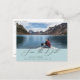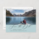 Boho chic script enkel foto, pulverblå bröllop spara datum postkort. Kortet har elegant modern kalligrafi "Spara Datum", på framsida och baksida.
