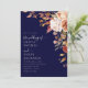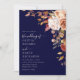 Modern Boho Marinblå Bränd Orange Blommig Bröllop Inbjudningar