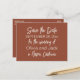 Modern Boho Minimalist Rust Terracotta Spara vykortet för datum. Utformning av kute, minimal modern estetik. I contemporary färg och brev. Har varma jordtoner med en ekologisk känsla.