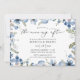 I morse elegant bröllop efter inbjudan från vår insamling av blåpressad Blommigt finns en blommigt med blå vattenfärg och delikata gröna vinstockar, parad med ett modernt typsnitt. Perfekt för alla säsonger. Om du vill göra avancerade ändringar väljer du Anpassa -> Redigera med Design verktyg.