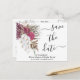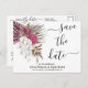 Modern Boho Vita Orkidéer Blush Burgunder Blommig Bröllop Spara Datum vykort.