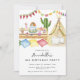 Bjud in dina vänner och deras barn till en utomhus boho picknick- tematiserad födelsedagsfest! Med akvarellbilder av en tipitält, bekväma kuddar, festlig bunting, en utsökt tårta, drycker och en kaktus som dekoration, kommer din speciella dag säkert att vara oförglömlig. Kom och fira med oss!