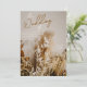Modern Boho Rustic Torkade blommor Bröllopsinbjudan. Den här bröllopsinbjudan har en hög upplösning, en riktig fotobild av den torkade blommigten bouquet och pampas gräs som bakgrund. Neutralt färg palett av elfenben, vete, rost, brunt och guld tillsammans med modern typografi. Baksidan har plats för ett modernt monogram. All text är redigerbar. Klicka bara på personlighetsknappen till bildens höger. Kolla in matchande objekt i samlingen för din händelse!