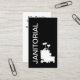 Cool modern business card for a Janitorial Service or Office Cleaning Professional in a bold simple design in classic black and white vertical custom layout.