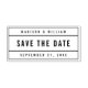 Snyggt Spara datumgummi Frimärke med namn och datum i fet typsnitt mellan uppdelad rektangel gräns. Anpassa den genom att ersätta platshållartexten med informationen. Om du vill ha fler alternativ, t.ex. att ändra teckensnitt, är det storlekt. Avstånd mellan brev eller radavstånd klickar du på knappen "Anpassa". *Observera att Zazzle Watermark som visas i zoomförhandsvisningen INTE visas på den färdiga tryckta produkten. © Rosewood and Citrus