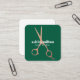 Modern Bold Green Faux Metal Scissors Hair Stylist Fyrkantigt Visitkort