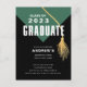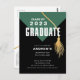 Modern och fetstil 2022-studentfestens inbjudan med en grönt grad sockel med en guld-tassel på svart bakgrund. Besök vår butik för att se den här designen i en mängd olika färg i skolan.