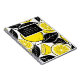 A striking and contemporary surface design that offers a burst of citrus energy. This seamless pattern features bold, illustrative yellow lemons and slices, beautifully contrasted with solid black leaves and outlines in a flat vector art style. The vibrant yellow, high-contrast black, and crisp white background create a modern, minimalist, and eye-catching aesthetic