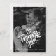 The typography features a bold, playful "thank you" script in crisp white, topped with a charming hand-drawn heart. Below this focal point, you can easily personalize the card with the names of the couple and your wedding date in a clean, professional sans-serif font. The high-contrast white lettering against your chosen photo creates a contemporary and joyful aesthetic that guests will love to display.