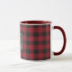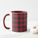 Monogram kaffe/te mugg med anpassningsbar som designat i och som innehåller personlig monogram och namn i familjen på en svart och röd buffelcheck/plaid/gingham check mönster. Jul-/Helgdag-presentidéer. Gåvor åt henne. Julgåvor i monogrammet.