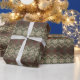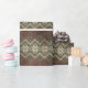 Papper julomslutning i ett plågat bondhus stil. Utformningen har en snöflinga mönster i rött, grönt och kraftbrunt.