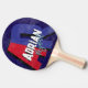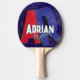 Snyggt bord-tennis-racket-personlig med namn i coola typsnitt, med stort överdimensionerat rött och blått brev med skugga över en solid mörk blått bakgrund.. modern monogrammad design, personlig med namnens snyggt..