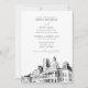 Modern Boston Bröllop Skyline Sketch Black & White Inbjudningar