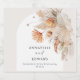 Modern naturlig terracotta bohemian pampas gräs botanisk bröllopsdag är för vin flaska. Vackra handtryckta blommigtens vattenfärger och modern skripttext. Modern trendutformning.