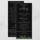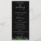 Modern vattenfärg botanisk grönska, svart bröllopsprogram. Programmet har flera rader för anpassade textlistor för ceremonieordning, bröllopsfest och tackkort.