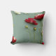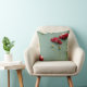 Förhöj ditt vardagsrum med detta fantastiska exempel på modern botanisk konst. Denna kastkudde har en elegant, luftig komposition av djupröda blommor och smala vilda blommor som tycks växa organiskt från hörnen och kanterna. Mot en sofistikerad, dämpad salviagrön bakgrund firar designen skönheten i negativt utrymme och skapar en lugn och exklusiv estetik.