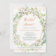 Eleganten inbjudningskort för möhippan har ett modernt, kopparutseendet geometriskt ram med ett trendig grönt löv-fyllt andetag.