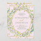Den här inbjudan från elegant bröllop har ett modernt, faux guld-utseendet geometriskt ram, med en utandning som är fylld med trendig grönt löv på rosa.