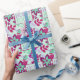 Denna julomslutning pappert har en modern utformning av blommönstret med HELA JULI-texten.