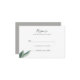 Ett responskort från bröllop som samordnar vår rena, elegant- och moderna bröllopsinbjudan, som innehåller grönt löv i vattenfärg på vit bakgrund och grått i elegant mörk. Baksidan är i fast grått.
