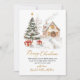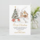 Elegant Modern botaniska "God julScript non-Photo Helgdagskorts". De här julkorten visar en fantastisk vattenfärgsdesign med en serensnövinter med ett charmigt byhus, ett vackert dekorerat Julgran och gåvor i förgrunden. "God jul hälsning är glatt handskrivet i guld, vilket ger en sofistikerad beröring till den vita bakgrunden. Den omvända sidan adorberas med ett känsligt guld-snöflummen mönster mot en kraftig dammig grönt, vilket ökar festiviteten. Perfekt för anpassning, dessa helgdagskort för personlig är ett elegant sätt att skicka varmt önskemål till familj och vänner denna julsäsong.