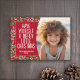Ett modernt sätt att leta efter ett helgdag-fotokort. Framsida - Ett enkelt skiftläge gränsen med en djup röd färg-bakgrund och ett stort enkelt teckensnitt Julhälsningar. Botaniska löv ingår i bakgrunden. Tillbaka - Ett modernt botaniskt mönster med löv och bär.