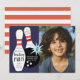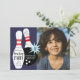 En modern födelsedagsfestinbjudan till en bowlingfest och plats för ett foto.
