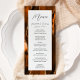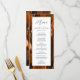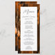 Den här eleganten har den moderna bröllop-menyn en vattenfärgsbränd orange med en bakgrund som trimmas med guld faux glitter. Texten visas i elegant charcol grått handskrift och sans serif typsnitt på en vit rektangel. Den agate-designen upprepas på motsatt sida.