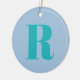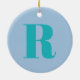 Modern Brev | Monogram - första Trendiget blått Julgransprydnad Keramik