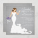 Snyggtens moderna möhippa med brunetstensfärgad brud har en modernt chic med ett vin-glas och en vacker bukett med lila-bröllopsbuketter som är tryckt på en papprare, populär grått grått-linne-bakgrund med tydlig vit text. Vår moderna brud inbjudningskort för möhippan är perfekt för en populär firande i vin möhippa. Besök vår butik för att se detta vackra inbjudningskort för möhippan i ett stort urval av blommigt bouquet färger och olika variationer i bruden.