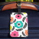 Modern Bright Flowers och Black Löv Monogram Bagagebricka