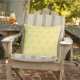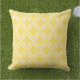 Snyggtens kudde har en modern dekorativ marockansk quatrefoil mönster i vitt. Anpassa den ljusa gultens bakgrund så att den koordineras med din utomhusdekoration.