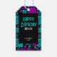 Modern Bright Neon Geometric Mönster-födelsedag Presentetikett