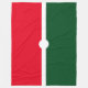 Den här roligten har eleganten en skarp röd och mörk grönt blå halvor i fast färg, åtskilda av ett sömlöst tunt vågrät vitt band med en centrerad vit cirkelformad utstötning.