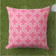 Snyggtens kudde har en modern dekorativ marockansk quatrefoil mönster i vitt. Anpassa den ljusa bakgrunden för rosa så att den koordineras med din utomhusdekoration.